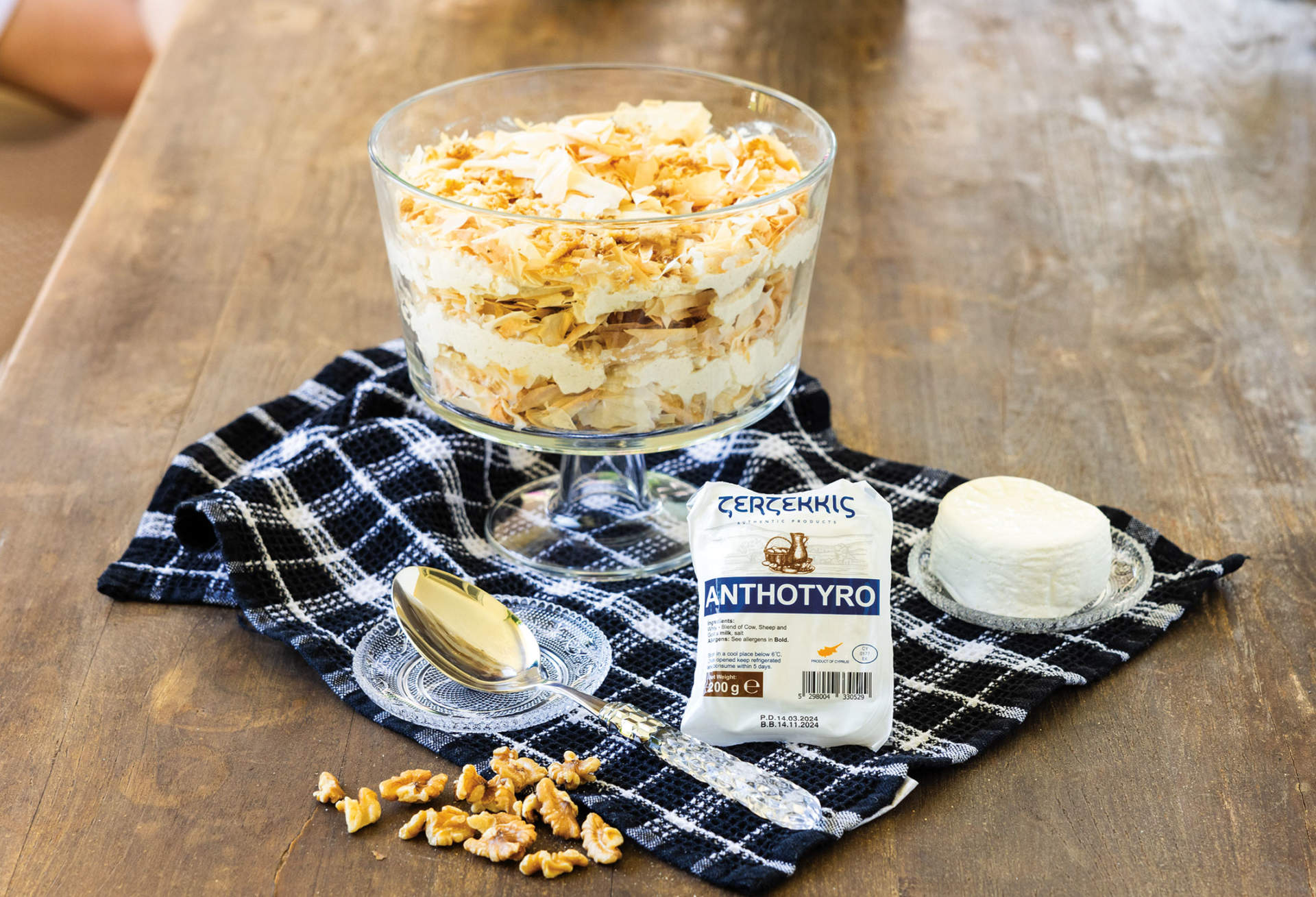 Το άρθρο παρουσιάζει μια συνταγή για κρέμα αναρρόφησης, η οποία περιλαμβάνει φύλλα κρούστας, ανθότυρο ζερζέκκις, ζάχαρη, μέλι, κρέμα γάλακτος, κανέλα,…