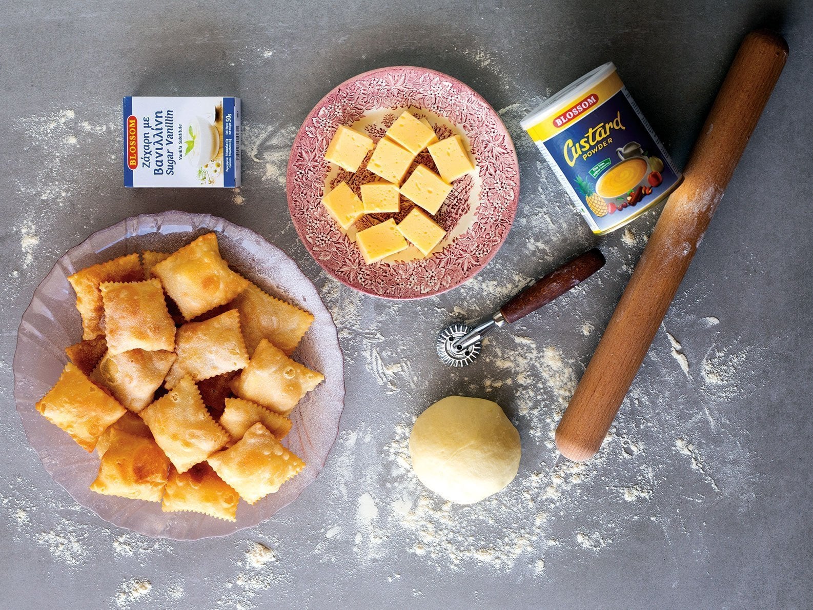 ΥΛΙΚΑ Για τη ζύμη 3 1/3 φλ. αλεύρι Χωριάτικο ½ κουταλάκι αλάτι1 φακελάκι ζάχαρη με βανιλλίνη Blossom 2 κουταλιές ξύδι…
