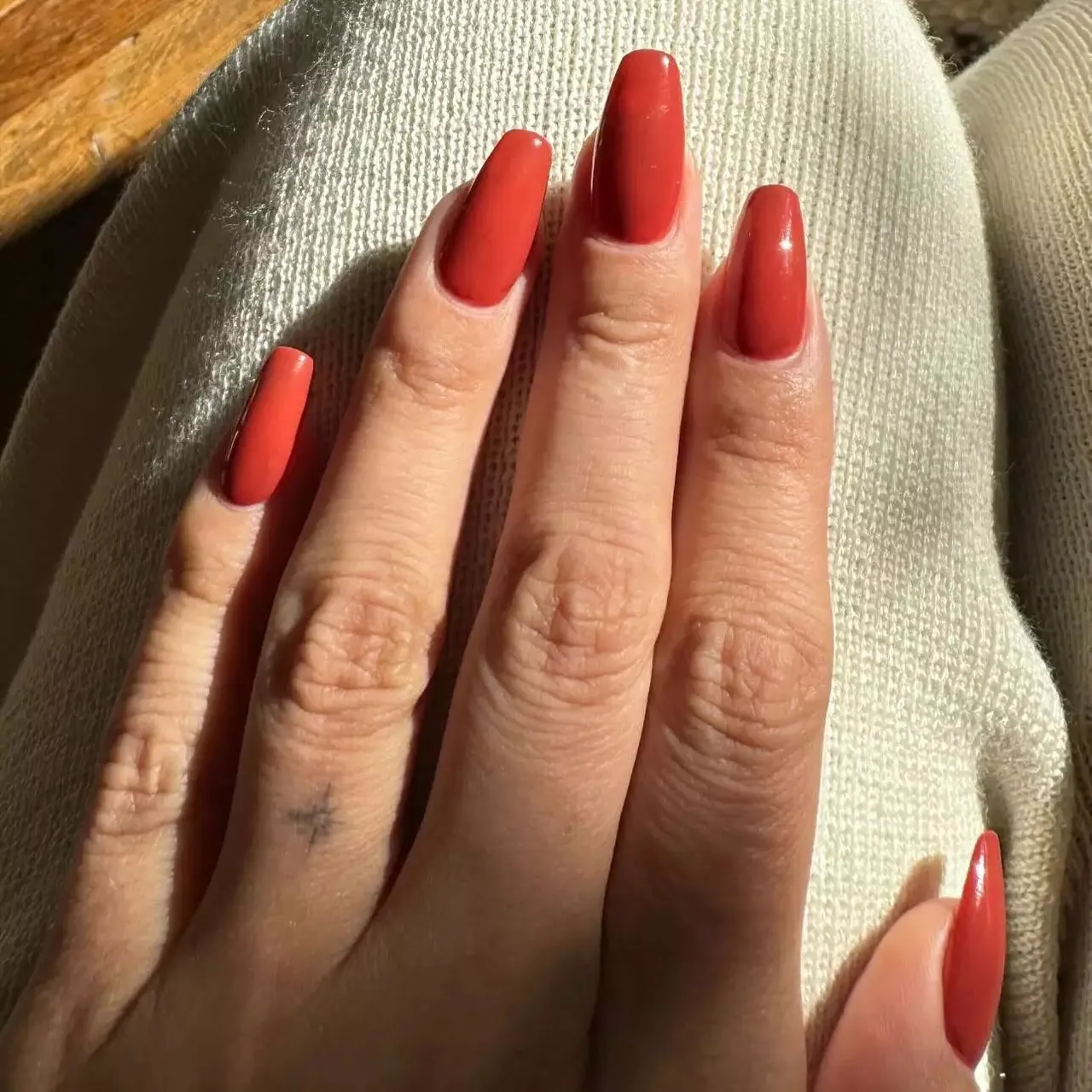 Το κλασικό κόκκινο μανικιούρ δεν εξαφανίζεται ποτέ. Το 2026 όμως εμφανίζεται μια πιο ζεστή και γήινη εκδοχή του. Το λεγόμενο brick red είναι μια απόχρωση που ισορροπεί ανάμεσα σε κόκκινο, τερακότα και σκουριασμένο πορτοκαλί.