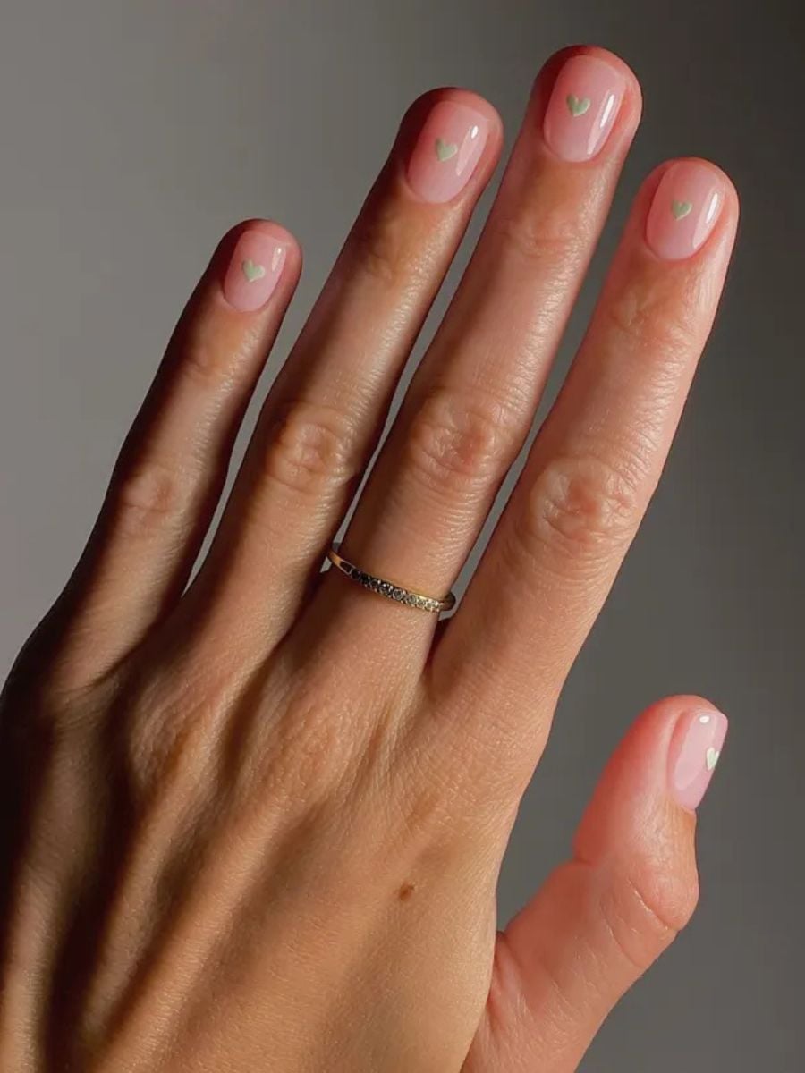Μία από τις πιο φρέσκες επιλογές είναι ένα nude μανικιούρ με μικρές καρδιές σε απόχρωση μέντας. Το απαλό πράσινο δίνει μια παιχνιδιάρικη αλλά και κομψή πινελιά, ιδανική για την εποχή. Αν προτιμάς κάτι πιο διακριτικό, τα mint tips -οι άκρες των νυχιών βαμμένες σε μέντα- είναι αρκετά έντονες ώστε να τραβούν το βλέμμα, χωρίς να γίνονται υπερβολικές.