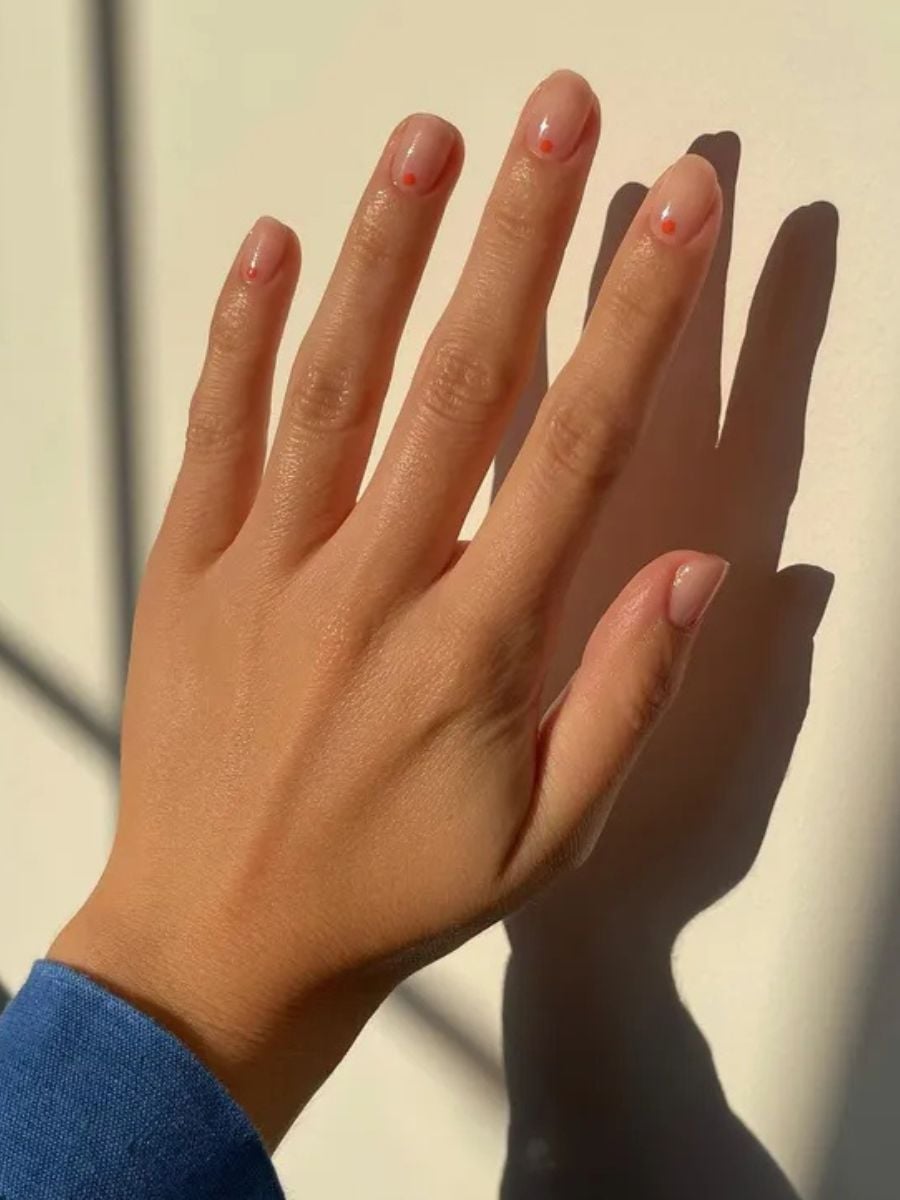 Τέλος, υπάρχει και η απόλυτη απλότητα: διάφανο ή nude μανικιούρ με μία τελεία σε κάθε νύχι. Μπορεί να ακούγεται ελάχιστο, αλλά πίστεψέ με είναι αρκετό για να κάνει τη διαφορά.