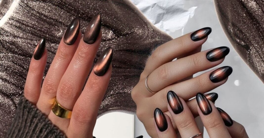 Η τάση με καφέ και κεχριμπαρένιες αποχρώσεις μπορεί να προσαρμοστεί στο προσωπικό σου στυλ — είτε πρόκειται για ένα σοκολατί-χρυσαφένιο cat eye μανικιούρ, aura nails σε καφέ τόνους, είτε απλώς για ένα λαμπερό χρυσό βερνίκι. Σκέψου καφέ, βελούδινο φινίρισμα με καραμελένιες πινελιές.