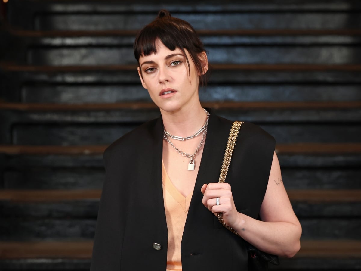 Kristen Stewart: Τα μαλλιά της είναι μαζεμένα σε ένα bun με grunge ύφος χάρη στο νέο της undercut. Το μάτια της είναι τονισμένα με απαλές γήινες αποχρώσεις και ροζ-nude απόχρωση στα χείλη.