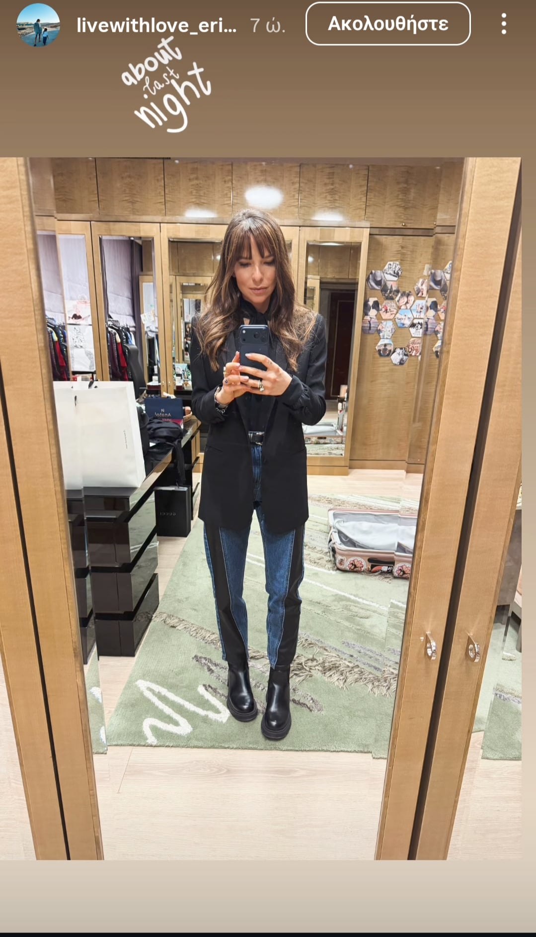 Η πιο εμφανής αλλαγή είναι οι αφέλειες που αποφάσισε να υιοθετήσει. Δεν είναι βαριές ή αυστηρές, αλλά ελαφρώς αέρινες και απαλά φιλαρισμένες, αγκαλιάζοντας το πρόσωπο με τρόπο που θυμίζει τα iconic hair looks των seventies. Το υπόλοιπο μήκος των μαλλιών της διατηρεί κίνηση και φυσική υφή, στοιχείο που ενισχύει ακόμη περισσότερο το retro αποτέλεσμα.