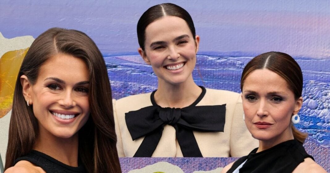 Zoey Deutch: Οι καφέ αποχρώσεις στα μάτια δημιουργούν μια απίθανη αντίθεση με το απαλό ροζ σε ζυγωματικά και χείλη. Τα μαλλιά της είναι μαζεμένα σε low bun με χωρίστρα στη μέση.