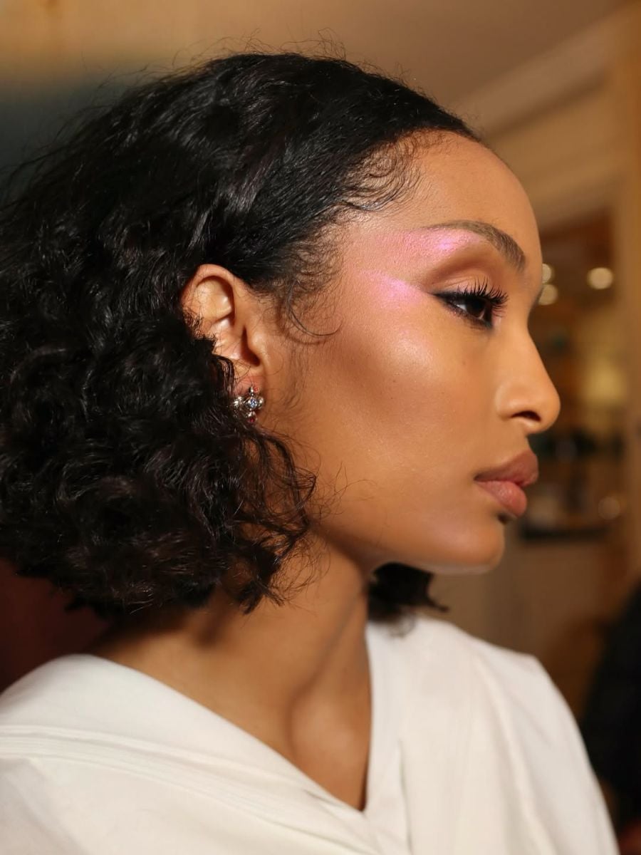 Η celebrity makeup artist Nikki, χρησιμοποίησε frosted μακιγιάζ για να δημιουργήσει αυτό το «snatched» eye look στη Yara Shahidi. Απλώνοντας ιριδίζουσα ροζ πούδρα κάτω από το φρύδι και ακριβώς πάνω από το ζυγωματικό — και κρατώντας το υπόλοιπο μακιγιάζ των ματιών minimal, με εξαίρεση τις ψυχρές, φωτεινές εσωτερικές γωνίες — δημιούργησε μια λαμπερή, σύγχρονη εκδοχή του cat-eye.