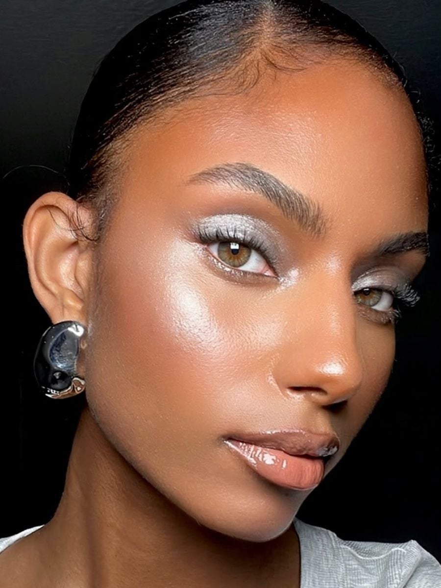 Οι όροι «frosted lids» και «no makeup-makeup» μπορεί να μοιάζουν οξύμωροι, αλλά αυτό το look δείχνει πόσο όμορφα μπορούν να δείχνουν τα ασημί chrome μάτια όταν συνδυάζονται με γυαλιστερά ουδέτερα χείλη, ροδαλά μάγουλα και ίχνος eyeliner. Παράλειψε το highlighter για ακόμα πιο λιτό αποτέλεσμα.