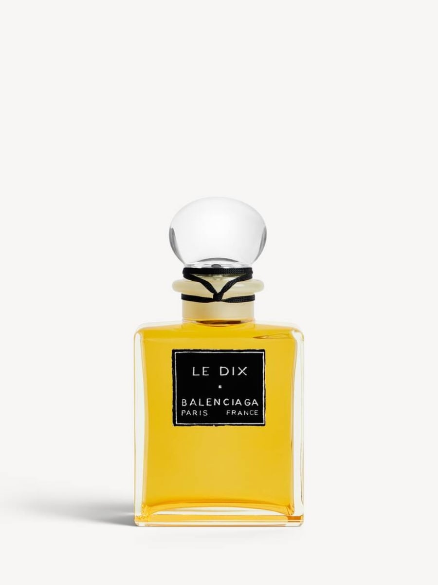 Balenciaga Le Dix Eau De Parfum: Αλδεΰδες, κορίανδρος, ροδάκινο, bergamot και λεμόνι στις νότες κορυφής, συνδυάζονται με ένα πλούσιο floral μείγμα από ίριδα, ylang‑ylang, κρίνο της κοιλάδας, τριαντάφυλλο και γιασεμί ενώ η βάση αποκαλύπτει civet, σανδαλόξυλο, μόσχο, βενζόιν, βανίλια, vetiver, amber, balsam του Περού και fève tonka, δημιουργώντας ένα πολύπλοκο και διαχρονικά κομψό τελείωμα.