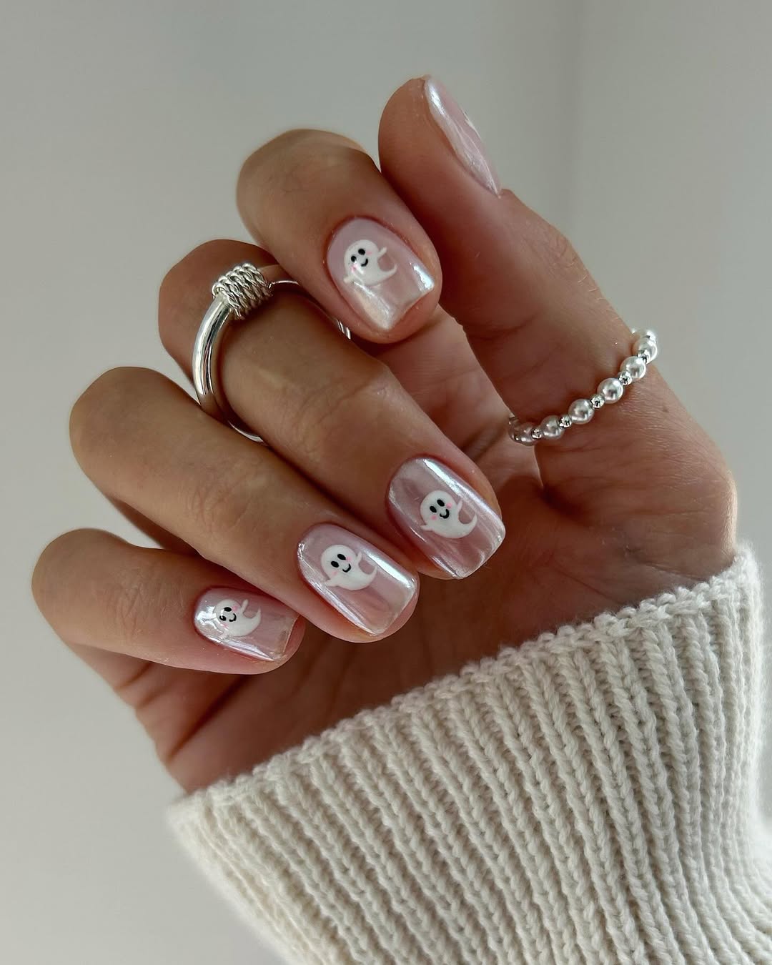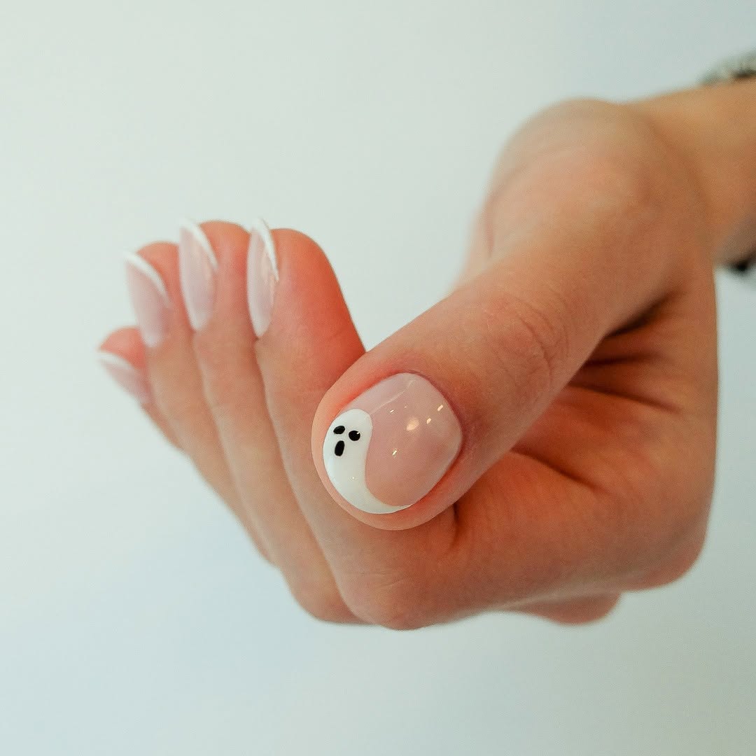 Δοκίμασε τα ευφάνταστα «ghost Frenchies» που έχουμε αρχίσει να βλέπουμε παντού. Αρκεί να αλλάξεις ελαφρώς το σχήμα του γαλλικού και να προσθέσεις ένα μικρό προσωπάκι-φαντασματάκι στις άκρες. Μια λεπτομέρεια τόσο χαριτωμένη, που ακόμη και οι λάτρεις του μίνιμαλ θα τη λατρέψουν.