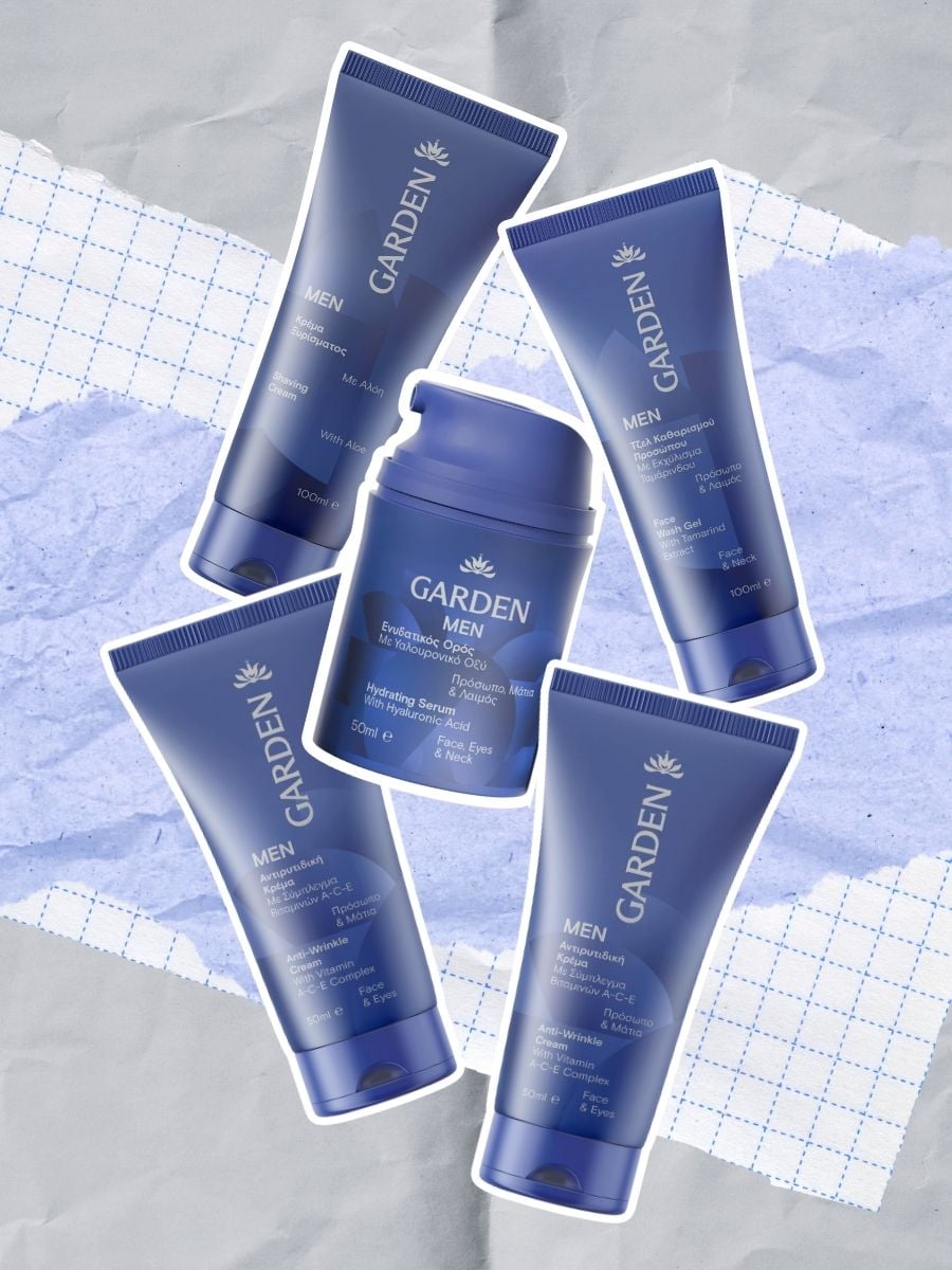 Η σειρά προϊόντων της Garden προσφέρει λύσεις για την ανδρική επιδερμίδα, όπως αντιρυτιδική κρέμα, ενυδατικά και καθαριστικά προϊόντα, καθώς και προϊόντα για το styling των μαλλιών.