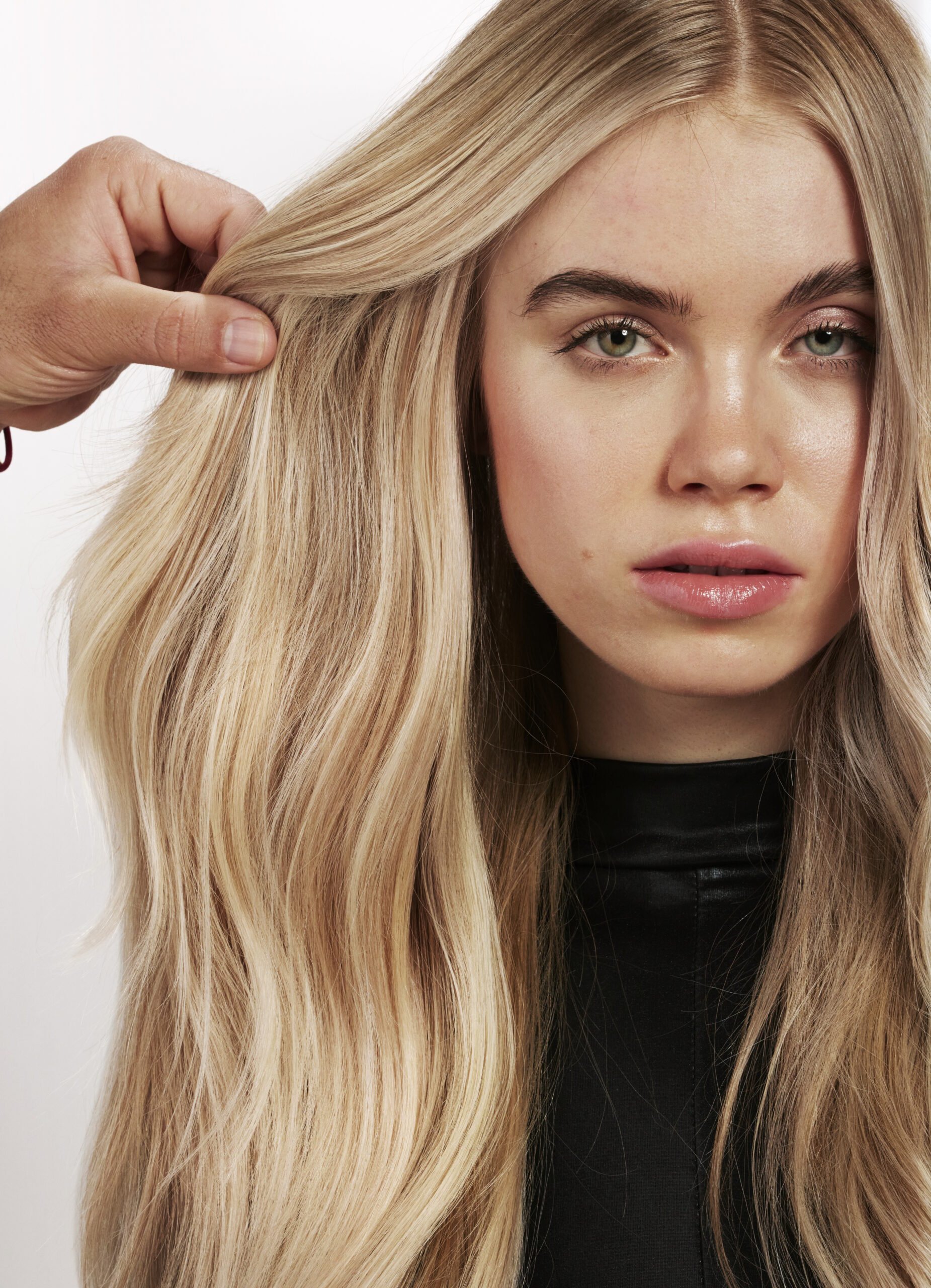 Δύο αψεγάδιαστα ξανθά looks δημιουργούνται χρησιμοποιώντας μία καινοτόμο ελεύθερη τεχνική και εφαρμογή αλουμινόχαρτων, προσφέροντας αψεγάδιαστο φως και πολυτελείς σκιάσεις. Αυτά τα looks επιτρέπουν στις πελάτισσες να αυτοεκφράζονται μέσα από φυσικά κομψά ξανθά ή δημιουργικές παστέλ αποχρώσεις, με μηδενική φθορά, χάρη στο Shinefinity.