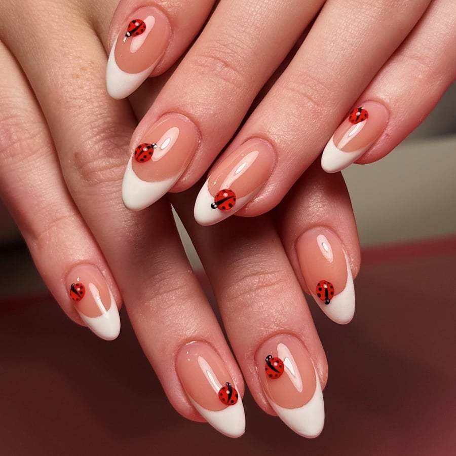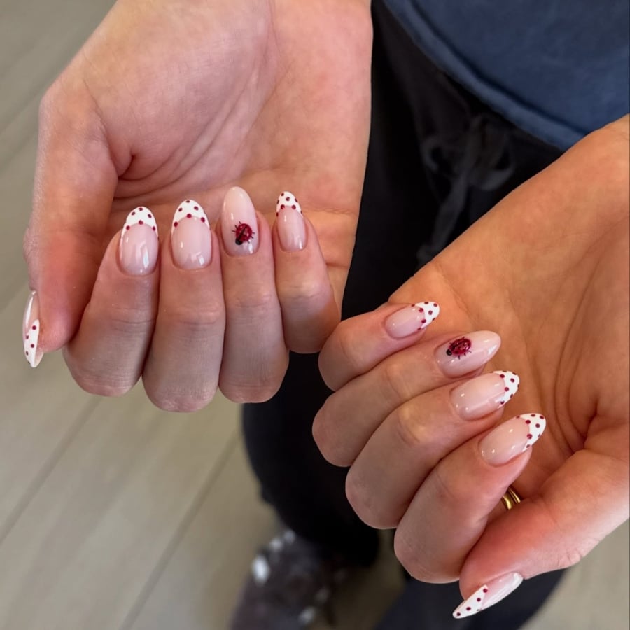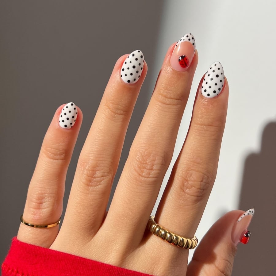 Τα ladybug nails επιστρέφουν δυναμικά, αποδεικνύοντας πως ακόμη και τα πιο παιχνιδιάρικα nail trends μπορούν να αποκτήσουν μια απροσδόκητα κομψή διάσταση. Εμπνευσμένα από τη χαριτωμένη πασχαλίτσα, αυτά τα νύχια συνδυάζουν το έντονο κόκκινο με τις χαρακτηριστικές μαύρες τελείες, δημιουργώντας ένα αποτέλεσμα που ισορροπεί ανάμεσα στο cute και το statement.