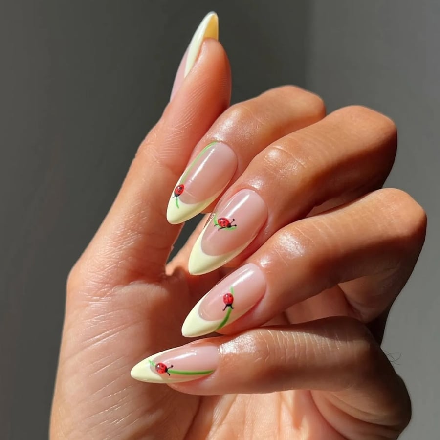 Mint απόχρωση στα tips, μια πράσινη, σαν φύλλο, πινελιά και μικροσκοπικές, χαριτωμένες πασχαλίτσες.