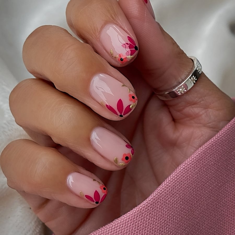 Μικρές διαγώνιες floral λεπτομέρειες για εσένα που παραμένεις πιστή στα κοντά νύχια.