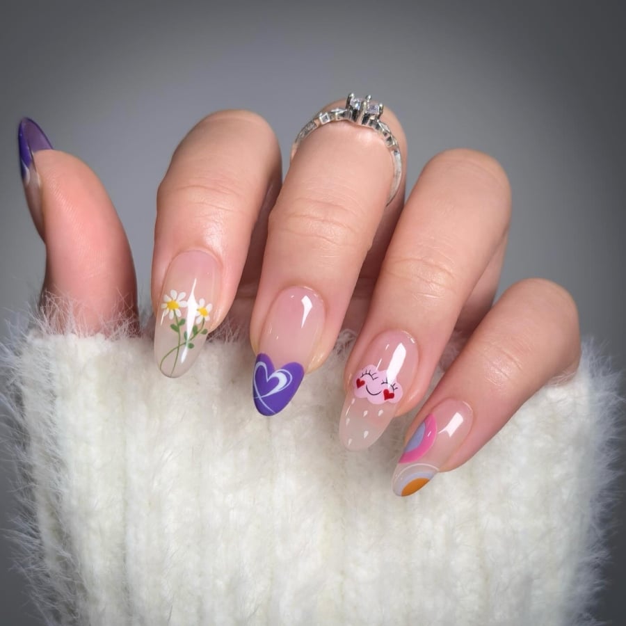 Κι αν πάλι είσαι τολμηρή, μπορείς να συνδυάσεις τις χαριτωμένες μαργαρίτες με σύννεφα, καρδιές και ουράνια τόξα, σε ένα ονειρεμένο μανικιούρ.