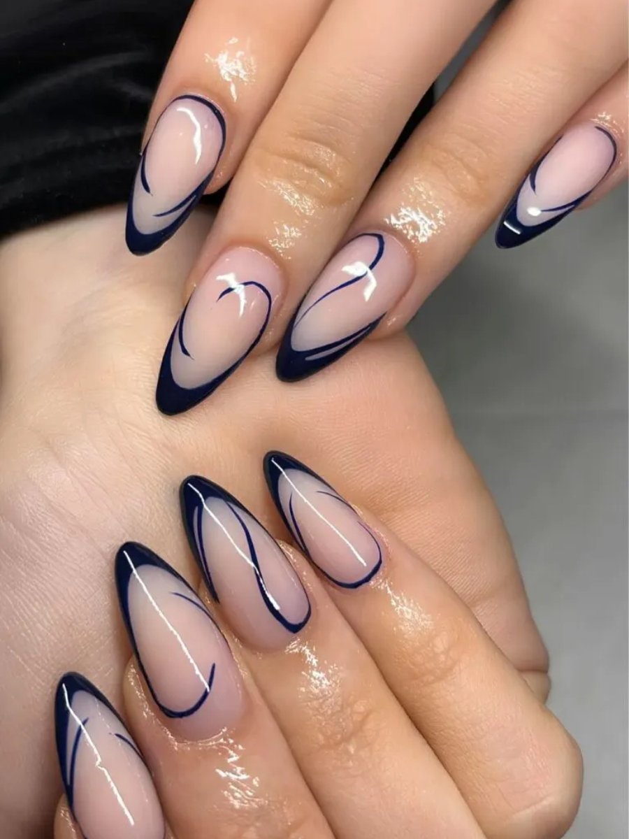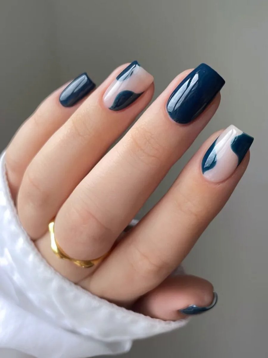 - Το λευκό και μπλε μανικιούρ αναδεικνύει φθινοπωρινή κομψότητα και ισορροπία.