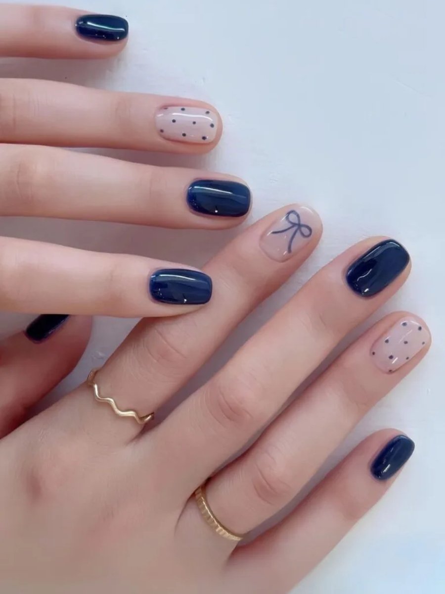 - Εμπνευσμένα looks περιλαμβάνουν minimal, coquette dots και navy blue κυματισμούς.