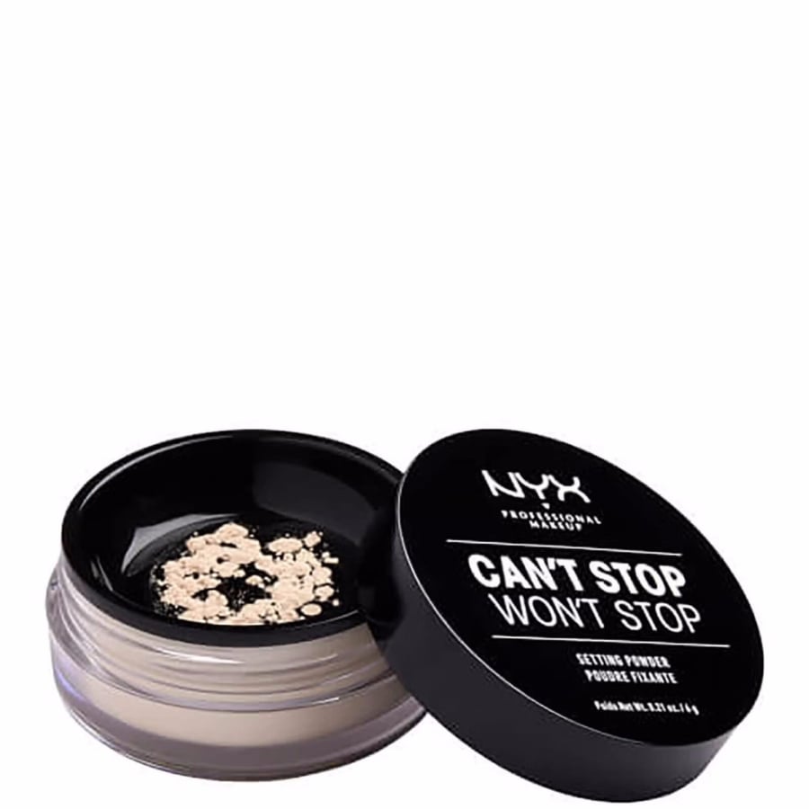 NYX Can’t Stop Won’t Stop Setting Powder: Η ελαφριά σύνθεσή της απορροφά τη λιπαρότητα ενώ αφήνει την επιδερμίδα απαλή, ματ και δροσερή. Την απλώνεις κάτω από τα μάτια, στα ζυγωματικά ή στη λιπαρή ζώνη Τ για να σταθεροποιήσεις το μακιγιάζ.