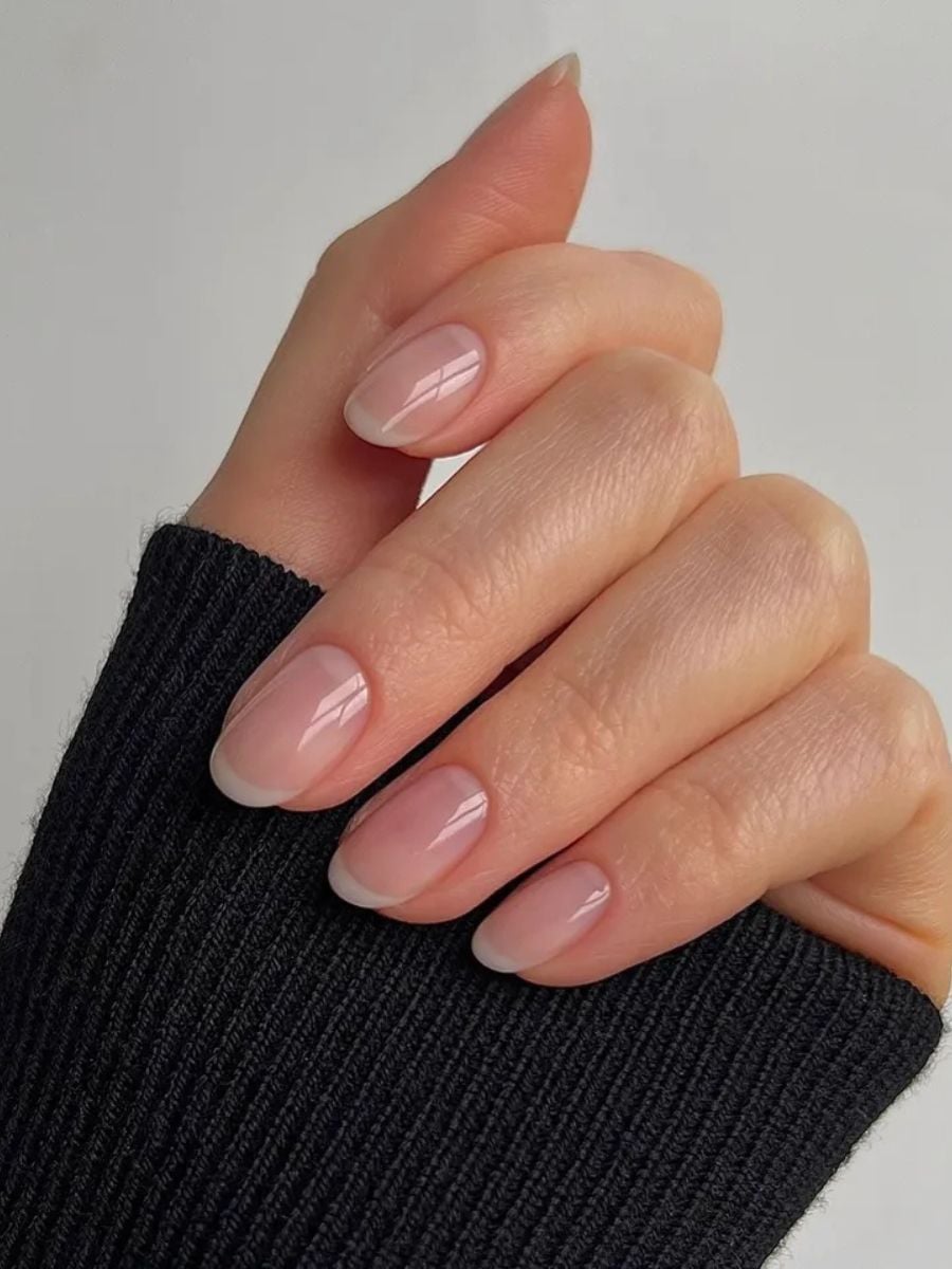 Σε περίπτωση που το κλασικό γαλλικό σου φαίνεται πολύ έντονο, δοκίμασε μια πιο απαλή εκδοχή. Αυτή η διακριτική παραλλαγή χρησιμοποιεί ένα ημιδιάφανο λευκό στην άκρη αντί για έντονο γαλακτερό, δημιουργώντας ένα πολύ πιο φυσικό αποτέλεσμα. Φωτίζει διακριτικά τις άκρες, ενώ δείχνει απολύτως φυσικό — σαν το “no makeup” makeup, αλλά για τα νύχια.