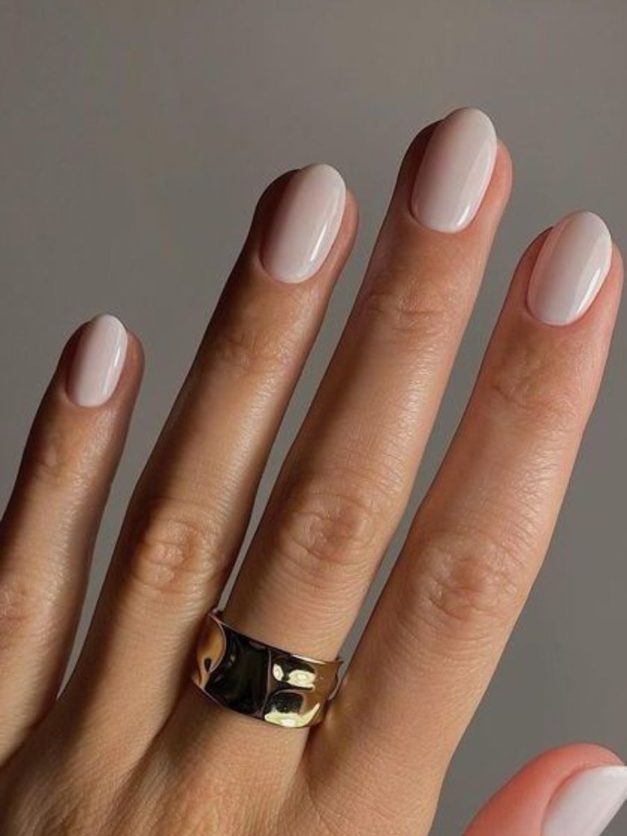Μετά το ημιδιάφανο ροζ, το γαλακτερό λευκό είναι μία από τις καλύτερες επιλογές για υγιή όψη. Αναζήτησε ημιδιάφανες, «θολές» υφές με υπόλευκο τόνο, αντί για έντονο, αδιαφανές λευκό που συχνά δείχνει υπερβολικά σκληρό στα χέρια. Τα ημιδιάφανα λευκά φωτίζουν τα νύχια με μία, δύο στρώσεις, αφήνοντας τη φυσική βάση να φαίνεται διακριτικά.