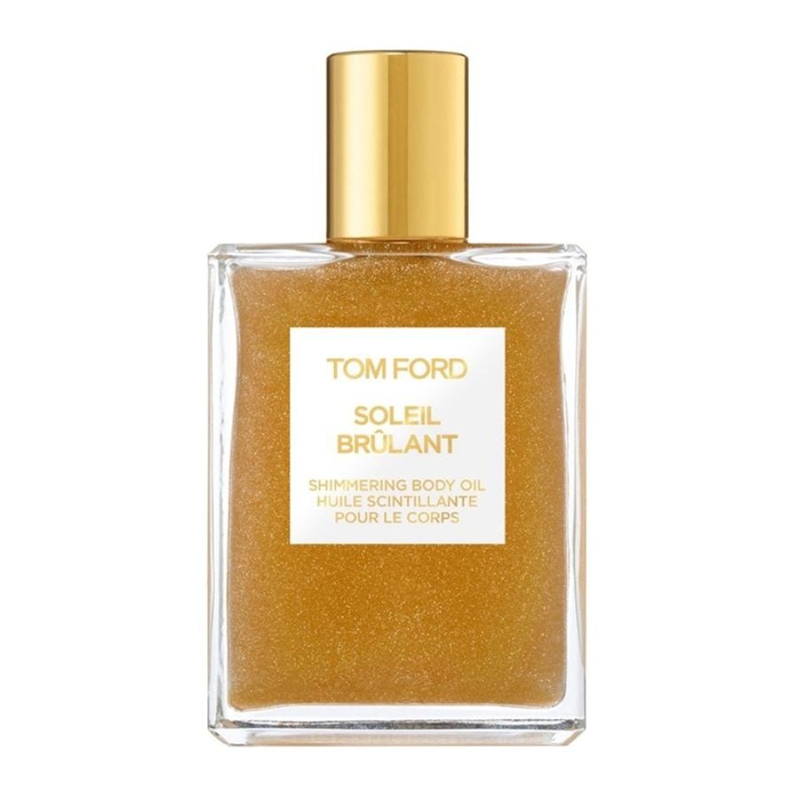 Tom Ford Soleil Brulant Shimmering Body Oil: Μεταξένιο αρωματισμένο έλαιο που χαρίζει εκτυφλωτική λάμψη στην επιδερμίδα χάρησ στα ρινίσματα από φύλλα χρυσού που περιέχει ενώ διεγείρει τις αισθήσεις με το αισθησιακό άρωμα που συνδυάζει ηλιόλουστα άνθη με ζεστό κεχριμπάρι.