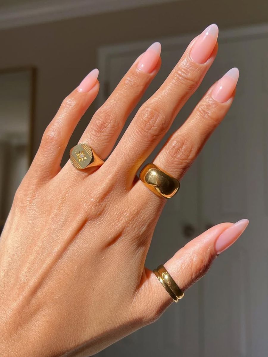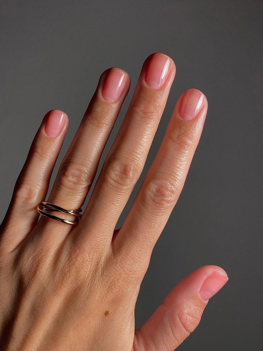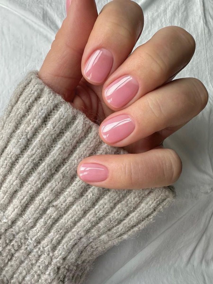 Για να το πετύχετε, ξεκινήστε με καθαρά νύχια, περιποιηθείτε τα επωνύχια με λάδι αγριοτριανταφυλλιάς και δώστε στα νύχια σας το σχήμα squoval. Ολοκληρώστε με μία ή δύο στρώσεις ροζ βερνικιού και ένα διάφανο gloss top coat για ένα πιο ζουμερό αποτέλεσμα.
