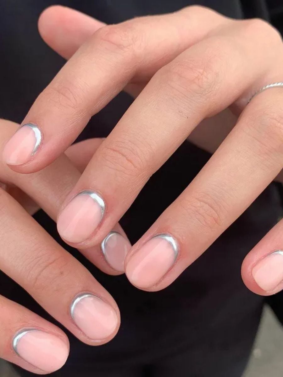 Chrome βάση αντί για άκρες; Φυσικά! Αντί για το κλασικό γαλλικό με μεταλλική λεπτομέρεια στις άκρες, εδώ όλη η επιφάνεια του νυχιού καλύπτεται με ένα mirror effect. Το αποτέλεσμα είναι μοντέρνο και λαμπερό. Μπορεί να κινηθεί σε ασημί, σαμπανιζέ ή ακόμα και ροζ-χρυσούς τόνους για πιο ζεστή αίσθηση.
