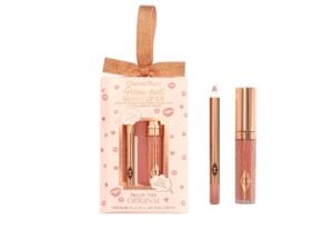 Pillow Talk Mini Glossy Lips Duo Pillow Talk, Charlotte Tilbury. Tέλεια γεμάτα, nude ροζ χείλη με το εμβληματικό Lip Cheat της Charlotte και το Collagen Lip Bath, εμπλουτισμένο με θρεπτικά συστατικά φροντίδας. Ένα υπέροχο δίδυμο που ενυδατώνει, σμιλεύει και χαρίζει λαμπερή λάμψη, όλα μέσα σε μια γιορτινή συσκευασία στολισμένη με κορδέλα – το ιδανικό δώρο για να κρεμάσεις στο χριστουγεννιάτικο δέντρο.