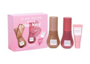 Best of Glow Hues, Glow Recipe. Ένα υπέροχο combo που περιέχει μια μινιατούρα Hue Drops, ένα κανονικού μεγέθους Dewy Flush Berry και ένα πολυτελές μέγεθος Watermelon Glow Glass Balm. Αυτό το σετ, όχι μόνο προσφέρει ελαφρύ και διαμορφώσιμης κάλυψης χρώμα, αλλά γίνεται επίσης μέρος της ρουτίνας περιποίησης της επιδερμίδας σας, θρέφοντας, ενυδατώνοντας και ενισχύοντας τη φυσική σας λάμψη.