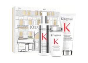 Limited Edition Set Première, Kérastase. Ψάχνεις το τέλειο δώρο για μια γυναίκα με ταλαιπωρημένα μαλλιά; Εμπλουτισμένο με συστατικά εξυγίανσης και αναδόμησης, όπως κιτρικό οξύ και γλυκίνη, το limited-edition σετ 3 προϊόντων της Kérastase, προσφέρει περιποίηση επαγγελματικού επιπέδου για πιο δυνατά και πιο λαμπερά μαλλιά.