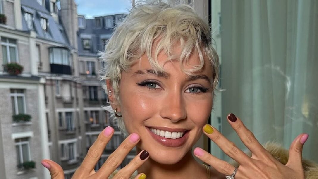 Εμπιστεύτηκε την nail artist Imarni, η οποία δημιούργησε για εκείνη ένα μανικιούρ με κοντά νύχια και χρώματα που ξεφεύγουν από τα συνηθισμένα. Το αποτέλεσμα ήταν μια πιο εκλεπτυσμένη εκδοχή του skittle mani – δηλαδή κάθε νύχι σε διαφορετικό χρώμα – με αποχρώσεις που ταιριάζουν απόλυτα στη φθινοπωρινή παλέτα.