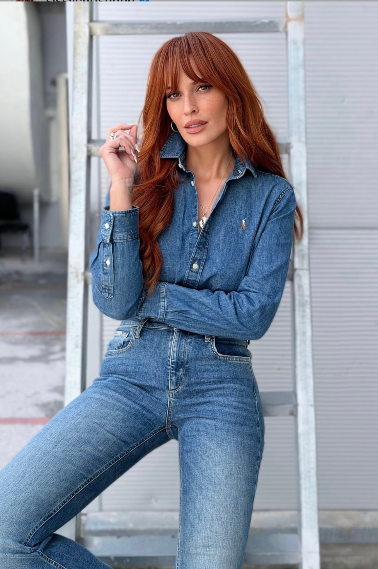 Είναι ιδανικό για καθημερινή χρήση, καθώς συνδυάζει άνεση και διάρκεια. Οι nude-ροζ αποχρώσεις συμπληρώνουν άψογα τα ginger μαλλιά και τη ζεστή επιδερμίδα της, δημιουργώντας ένα ισορροπημένο, γλυκό αποτέλεσμα.