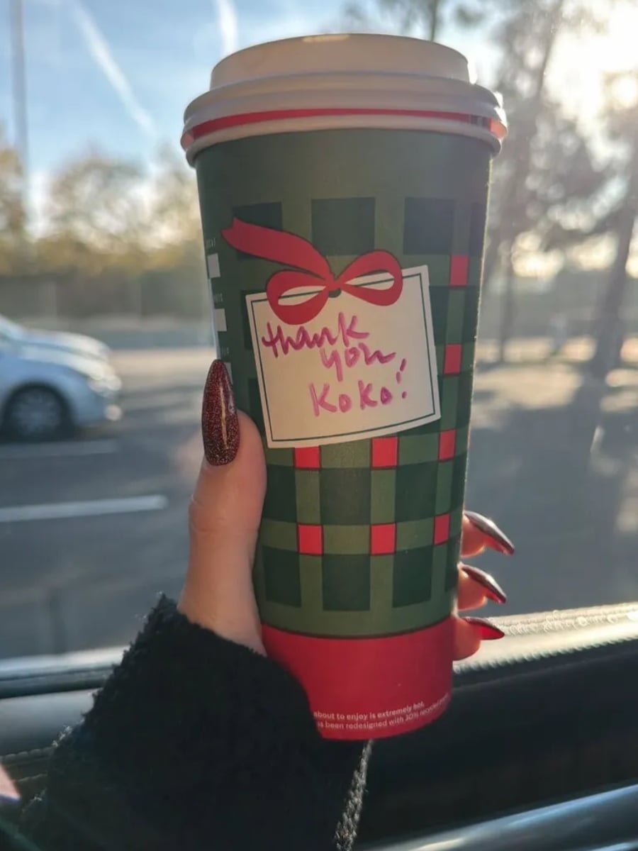 Η Khloé Kardashian κάνει ένα διάλειμμα από τα ουδέτερα nail looks αλλά και τα 90’s french manicure που υιοθετούσε τον τελευταίο καιρό, επιλέγοντας κάτι πιο γιορτινό. Η ίδια, μοιράστηκε μια φωτογραφία στο Instagram story της, όπου κρατά ένα χριστουγεννιάτικο ποτήρι καφέ.