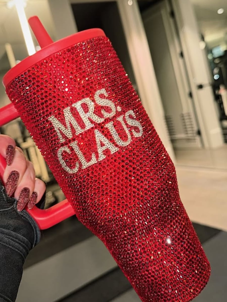 Στο Instagram story της, παρουσίασε τα νύχια της σε almond shape με σκούρο κόκκινο χρώμα και glitter, προσδίδοντας μια γιορτινή πινελιά που ταιριάζει με το εορταστικό της ρόφημα.