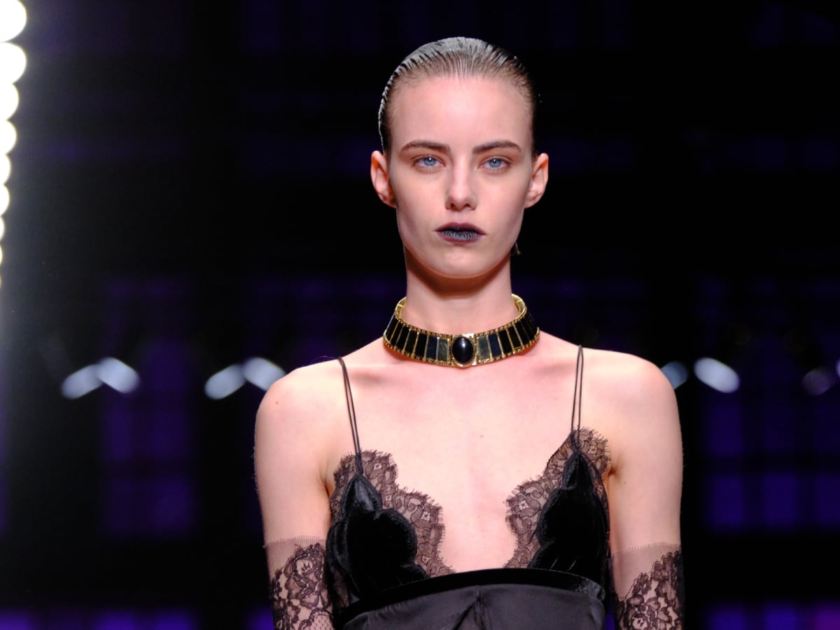 Η συλλογή FW 2026 που είδαμε χθες στην Εβδομάδα Μόδας στο Μιλάνο κινείται σε μια ατμόσφαιρα σκοτεινής πολυτέλειας, όπου η έντονη θηλυκότητα συναντά τη δομημένη ραπτική. Κυριαρχούν η μαύρη δαντέλα και οι διαφάνειες που παραπέμπουν σε lingerie αισθητική. Τα animal prints, σήμα κατατεθέν του οίκου είναι πάντα ενώ η συνολική εικόνα είναι μια μίξη 80s και 90s glamour με σύγχρονη, πιο αυστηρή γραμμή.