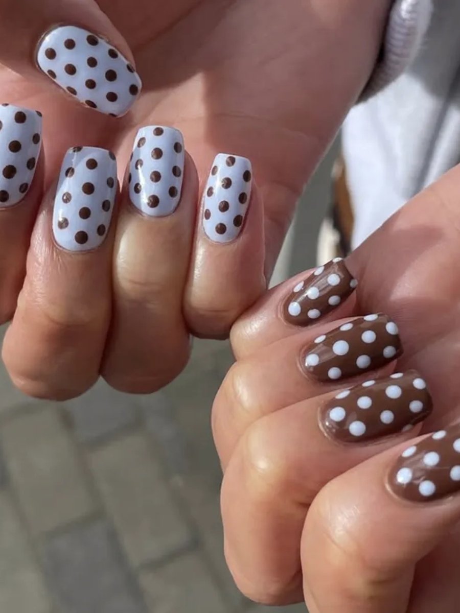 Αν και τα αξεσουάρ που συνδυάζουν αυτά τα δύο χρώματα είναι παντού αυτή τη στιγμή, ο πιο εύκολος τρόπος να ακολουθήσεις την τάση είναι να βάψεις τα νύχια σου εναλλάξ καφέ και μπλε. Ή, αν θέλεις κάτι πιο ιδιαίτερο, μπορείς να προσθέσεις και nail art σε αυτά τα δύο χρώματα.