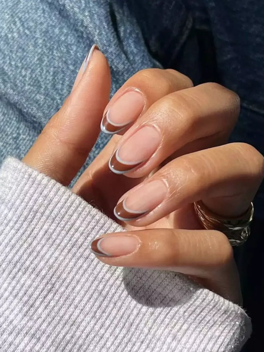 French και πάλι αλλά με διάφανη βάση και στα tips διπλή γαλάζια καμπύλη και espresso brown στο μέσο.