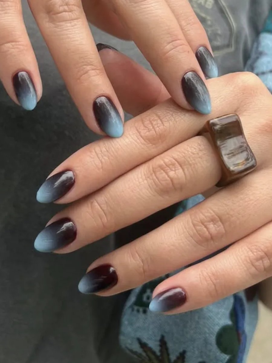 Εντυπωσιακό ombre με velvet φινίρισμα. Η βάση είναι καφέ και καταλήγει στην ωραιότερη μπλε απόχρωση.
