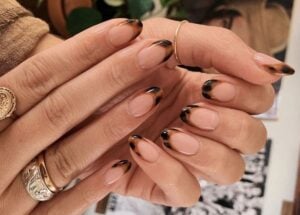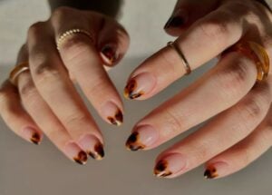 Αν προτιμάς κάτι πιο διακριτικό, το γαλλικό με tortoise shell άκρες είναι ιδανική επιλογή. Το μοτίβο φαίνεται μόνο στην άκρη, ενώ η υπόλοιπη βάση βάφεται σε ένα ημιδιάφανο nude χρώμα..