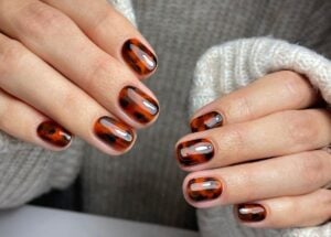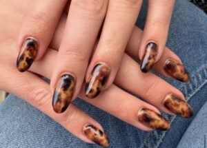 • Το tortoise shell μοτίβο επιστρέφει στη μόδα των νυχιών, προσφέροντας κομψότητα με αποχρώσεις πορτοκαλί, καφέ και μαύρου.