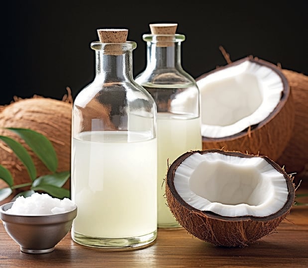 το λάδι καρύδας, μέχρι να ομογενοποιηθούν τα υλικά. Αμέσως μετά απλώστε τη μάσκα