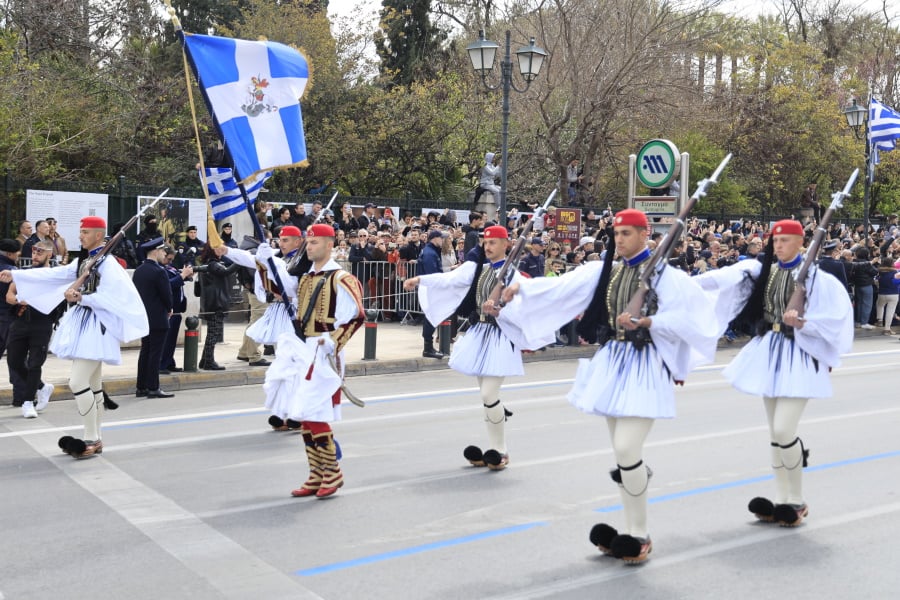 Με ιδιαίτερη λαμπρότητα και πλήθος κόσμου να κατακλύζει το κέντρο της Αθήνας, πραγματοποιήθηκε η μεγάλη στρατιωτική παρέλαση στο Σύνταγμα για τον εορτασμό της 25ης Μαρτίου.