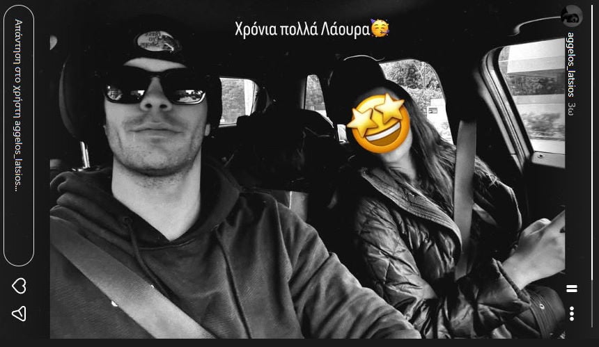 Ο Άγγελος Λάτσιος δημοσίευσε φωτογραφία με την αδελφή του μέσα στο αυτοκίνητο, καλύπτοντας το πρόσωπό της με ένα ενθουσιασμένο emoji, αφού η ίδια έχει ιδιωτικό τον λογαριασμό της στο instagram