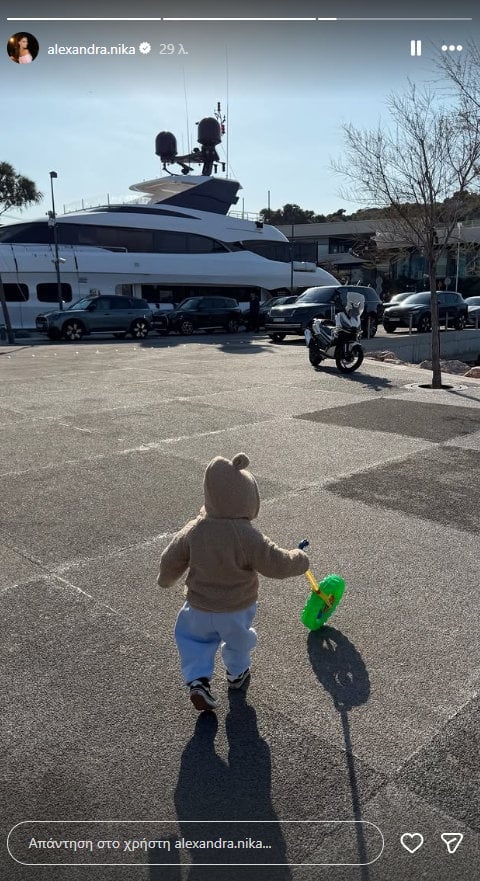 Αυτή τη φορά, η σύζυγος του τραγουδιστή δημοσίευσε φωτογραφία με τον μικρό Βασίλη από την απογευματινή τους βόλτα το απόγευμα του Σαββάτου.