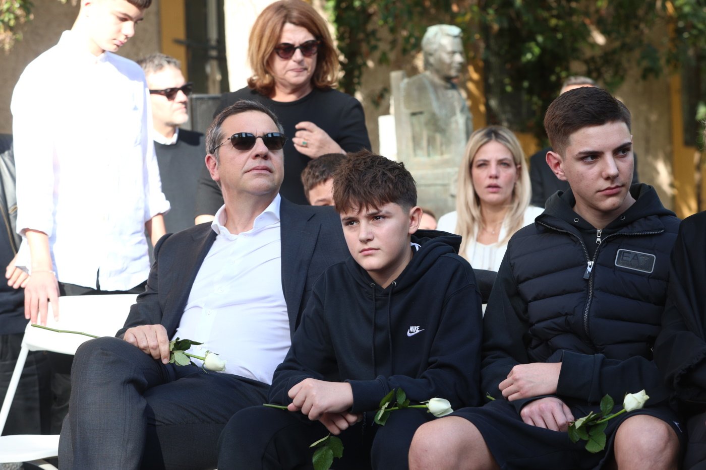 Αλέξης Τσίπρας: Με τους γιους του και τη Μπέττυ Μπαζιάνα στην αποχαιρετιστήρια τελετή του Αλέκου Φλαμπουράρη
