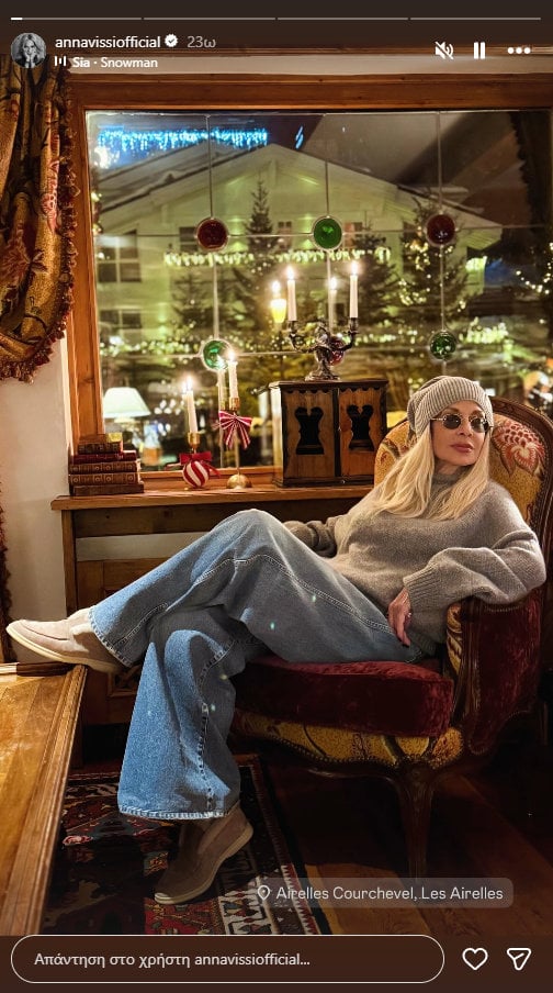 Η Άννα Βίσση απολαμβάνει τις χριστουγεννιάτικες διακοπές της στο πολυτελές χειμερινό θέρετρο του Κουρσεβέλ στη Γαλλία, συνοδευόμενη από τα εγγόνια της, Νίκο και Νέστορα.