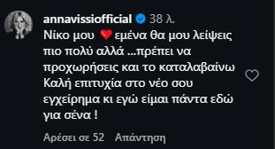 Τα σχόλια κάτω από την ανάρτησή του ήταν πολλά, ωστόσο, αυτό που ξεχωρίζει δεν είναι άλλο από αυτό της ίδιας της Άννας Βίσση.