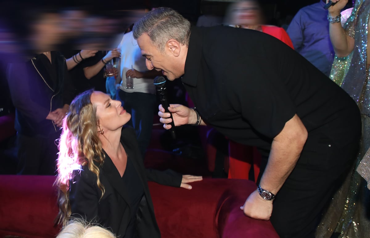 Η σχεδιάστρια μόδας απόλαυσε τον σύζυγό της επί σκηνής, παρακολουθώντας το πρόγραμμά του από τα πρώτα τραπέζια του νυχτερινού κέντρου. Καθ’ όλη τη διάρκεια της βραδιάς, δεν έλειψαν οι τρυφερές στιγμές ανάμεσα στο ζευγάρι, οι οποίες τράβηξαν τα βλέμματα των παρευρισκομένων.