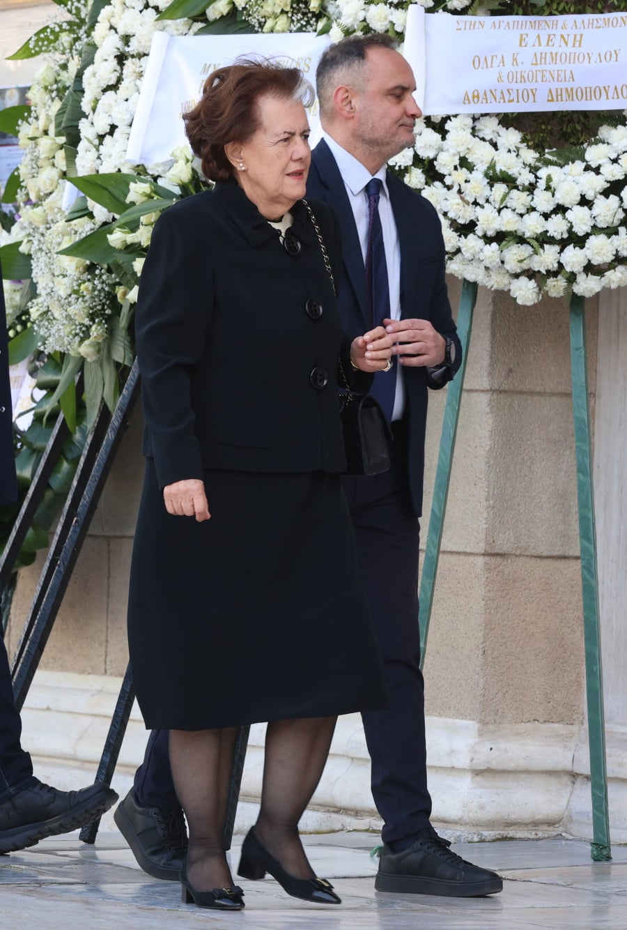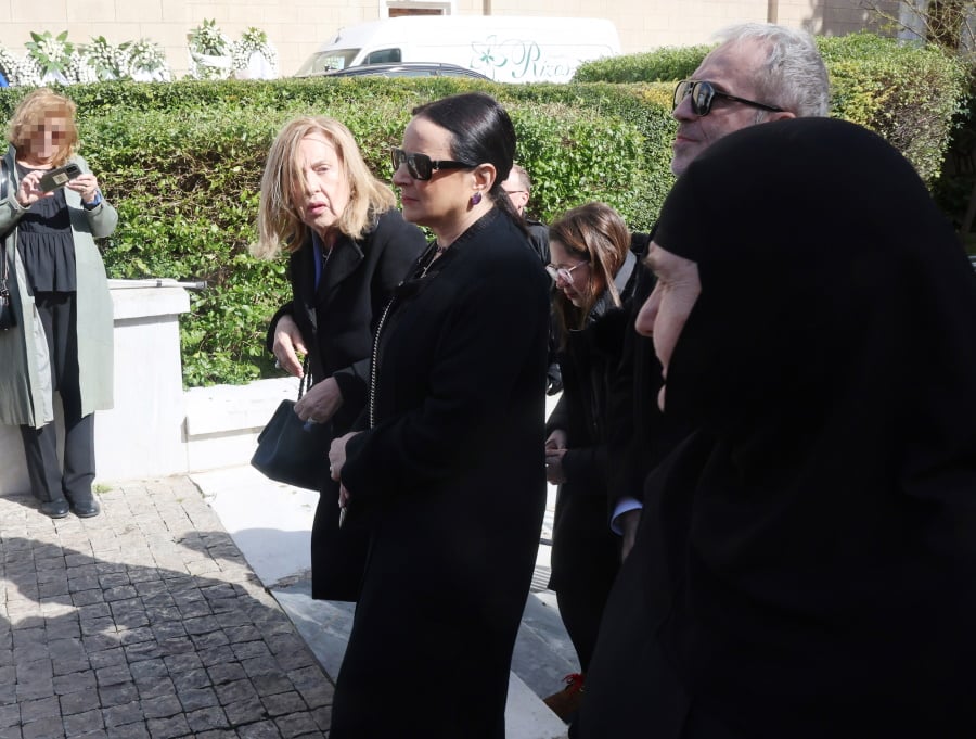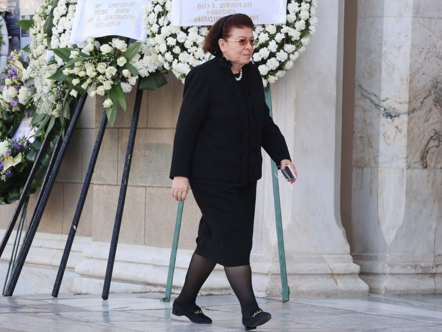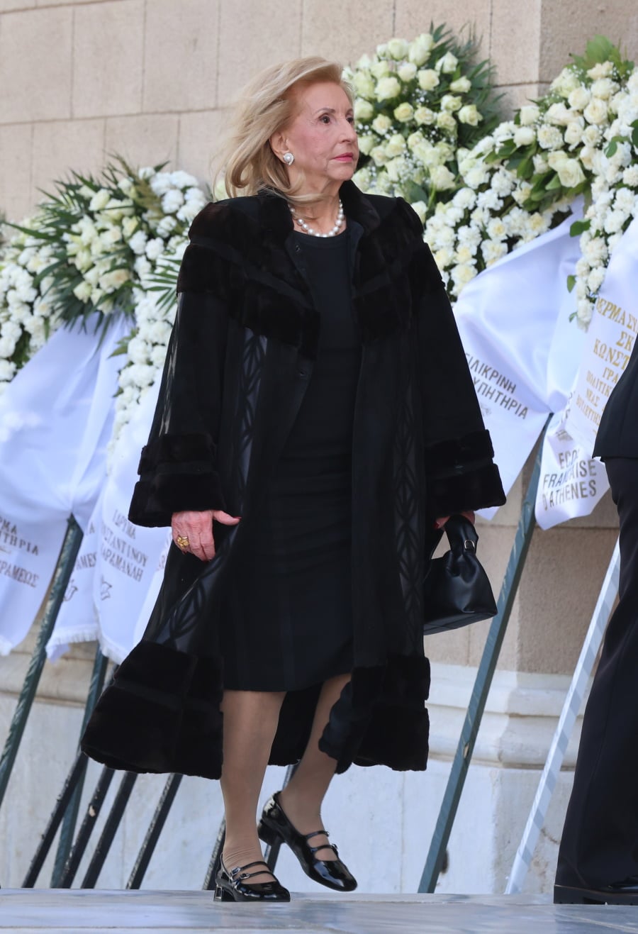 Τραγική φιγούρα η κόρη της, Μαρί-Ελέν Αρβελέρ, η οποία απαθανατίστηκε συγκινημένη να εισέρχεται μέσα στην Μητρόπολη Αθηνών.