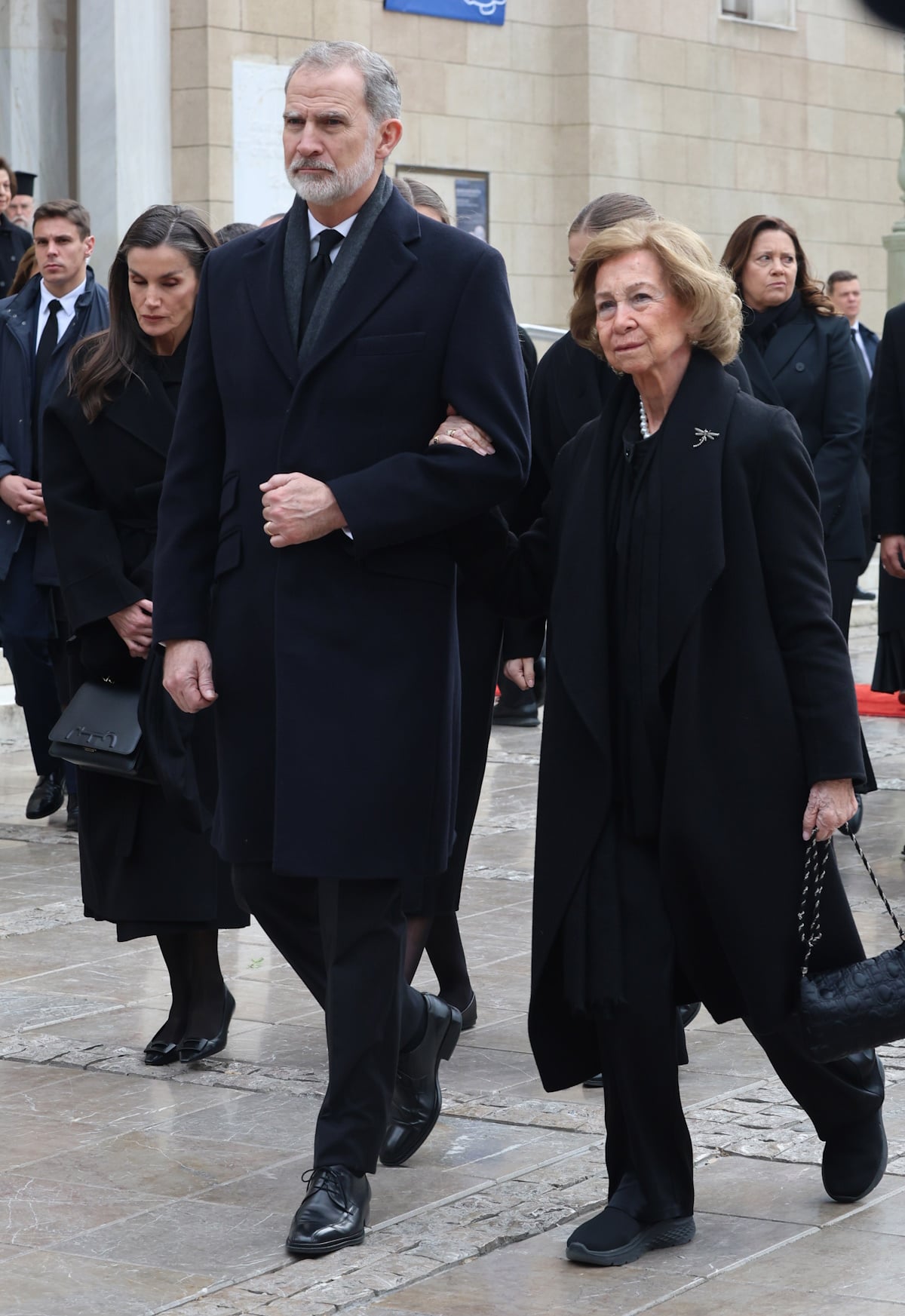 Στο πλευρό της βασίλισσας Σοφίας βρέθηκαν ο βασιλιάς της Ισπανίας Φελίπε ΣΤ΄ και η σύζυγός του, Λετίθια, καθώς και τα ανίψια της Παύλος, Νικόλαος και Φίλιππος ντε Γκρες, μαζί με τη μητέρα τους, Άννα Μαρία.